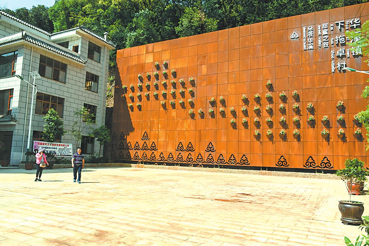 如今的上拖卓山上有林、村中有景,一面面色彩艳丽、格调清新的“文化墙”扮靓了乡村,整个村庄充满了浓郁的民族特色气息。村口广场石栏堆砌、古木参天,一派宁静、悠然的田园风光。
