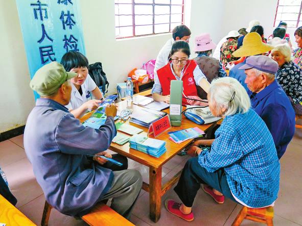 6月8日上午,玉溪市人民医院20余名医护人员组成健康义诊志愿服务小队,到澄江县海口镇居乐村开展送医、送药下乡免费义诊活动。
