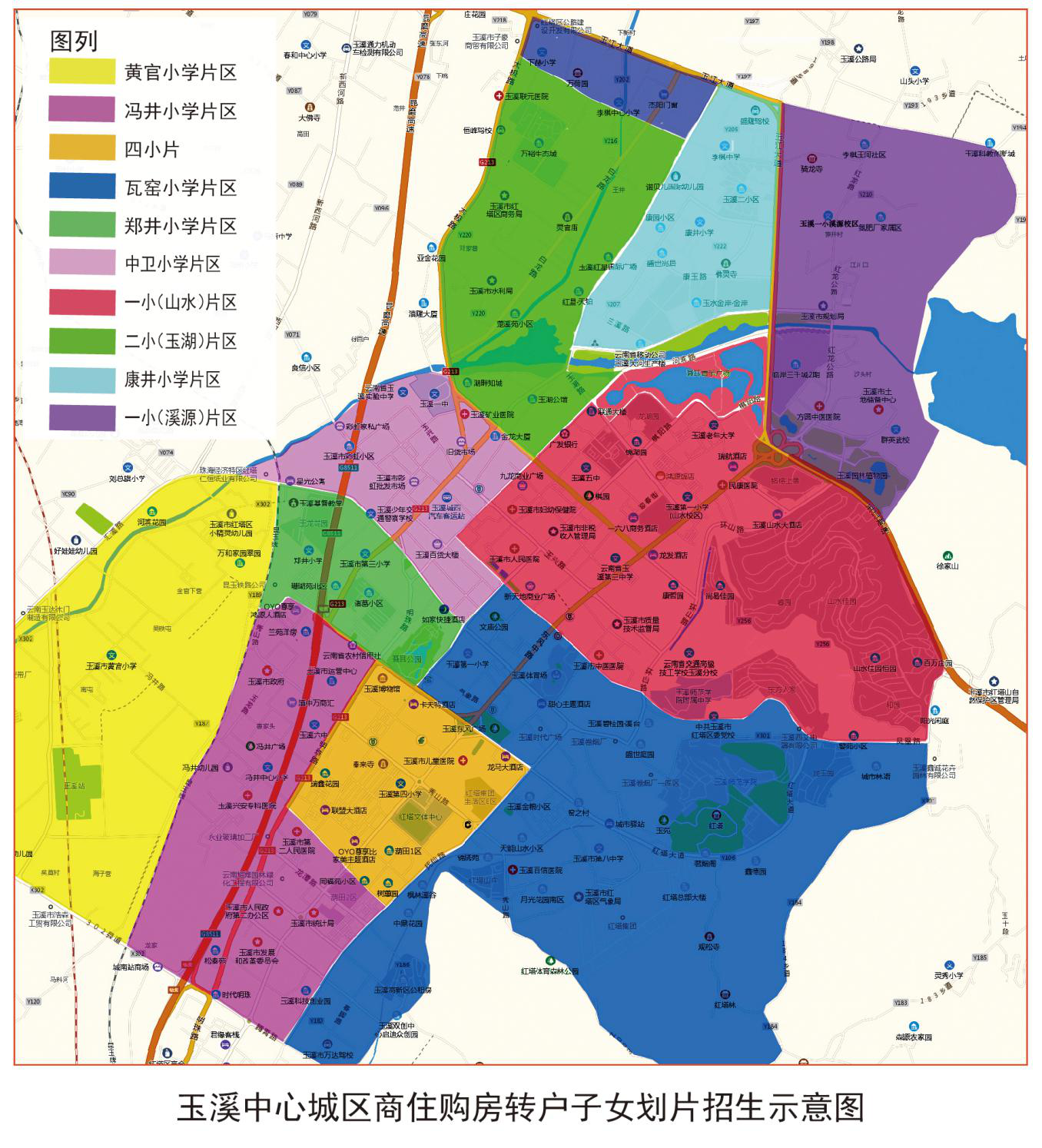 《玉溪中心城区商住购房转户子女划片招生示意图》