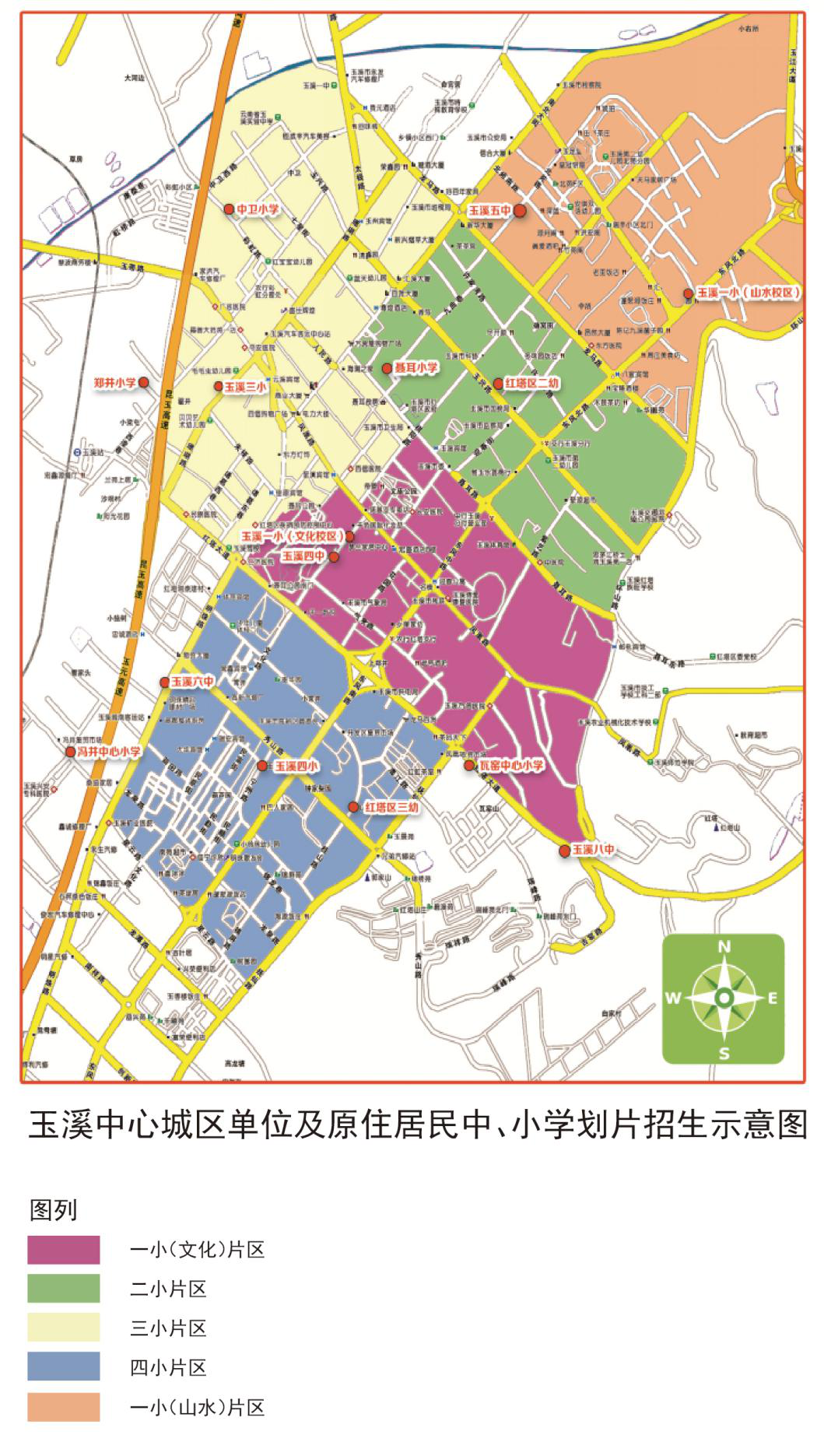 附:《玉溪中心城区单位及原住居民中、小学划片招生示意图》
