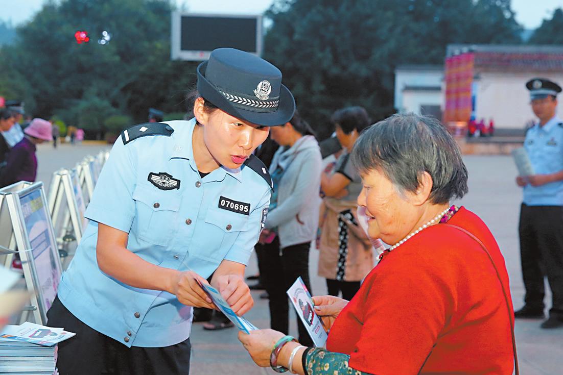9月18日晚,易门县公安局网安大队在龙泉文化广场开展主题为“网络安全为人民,网络安全靠人民”的网络安全法宣传活动,增强广大群众防骗意识,受到了群众好评。朱婷 摄